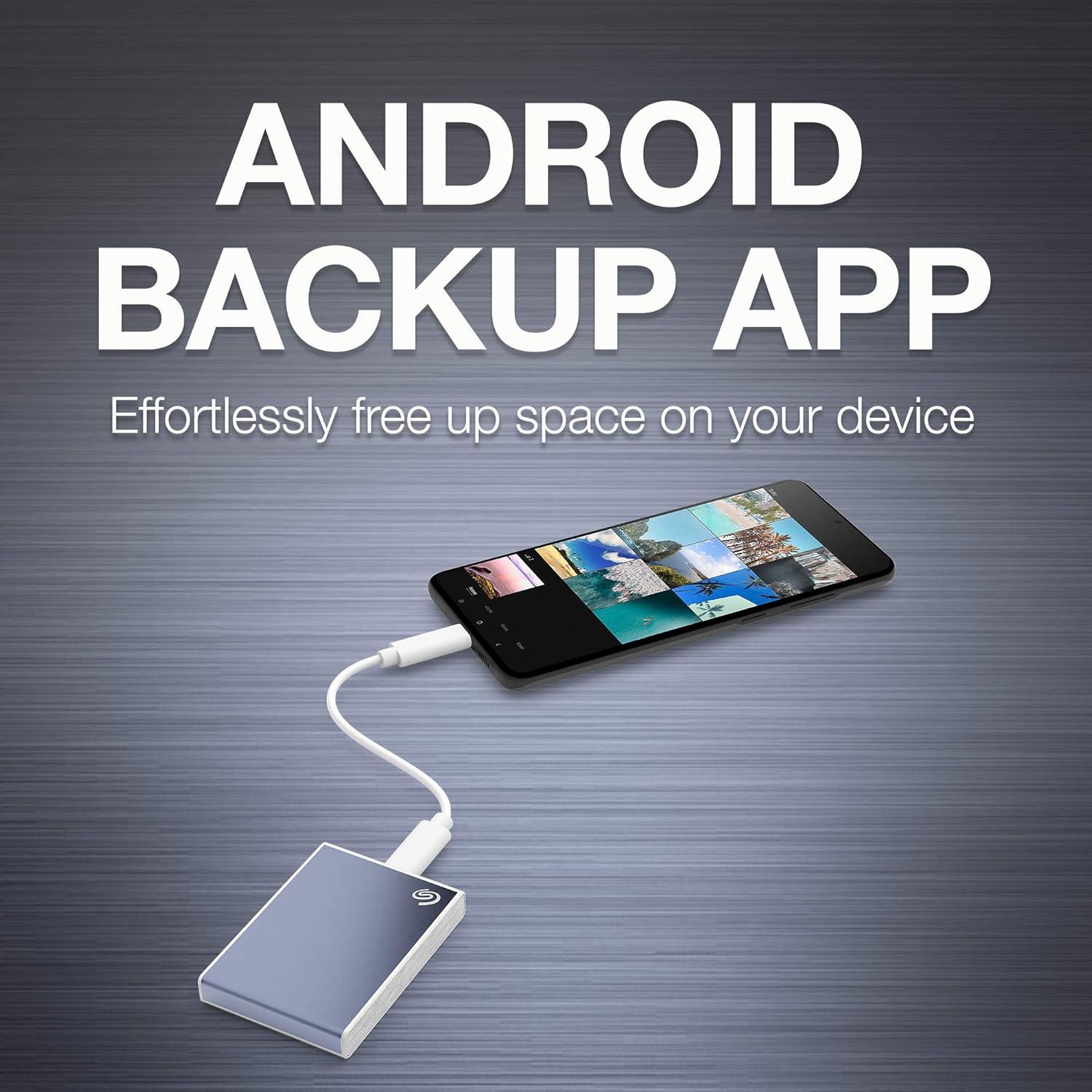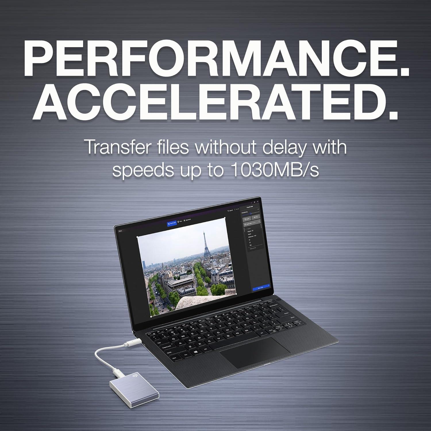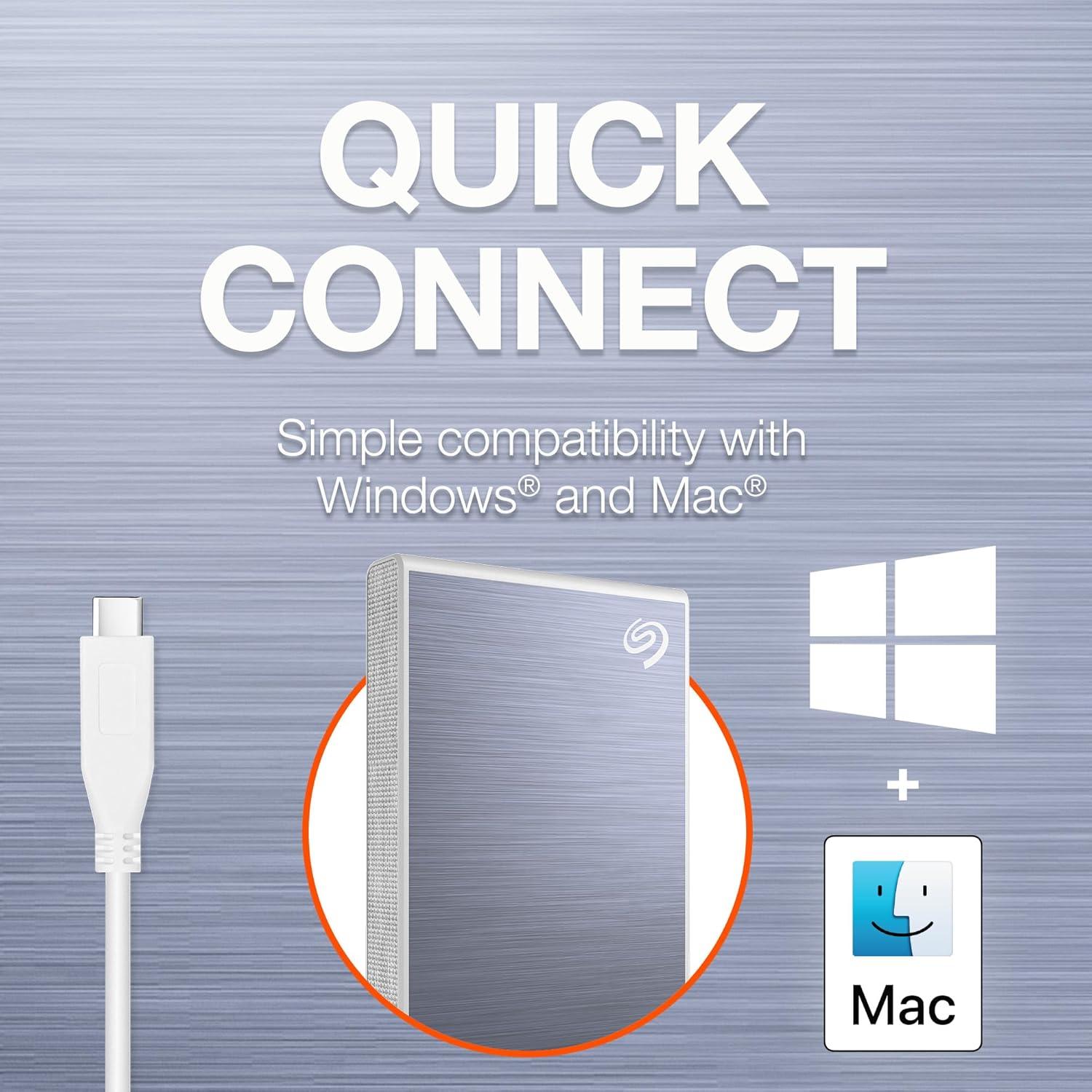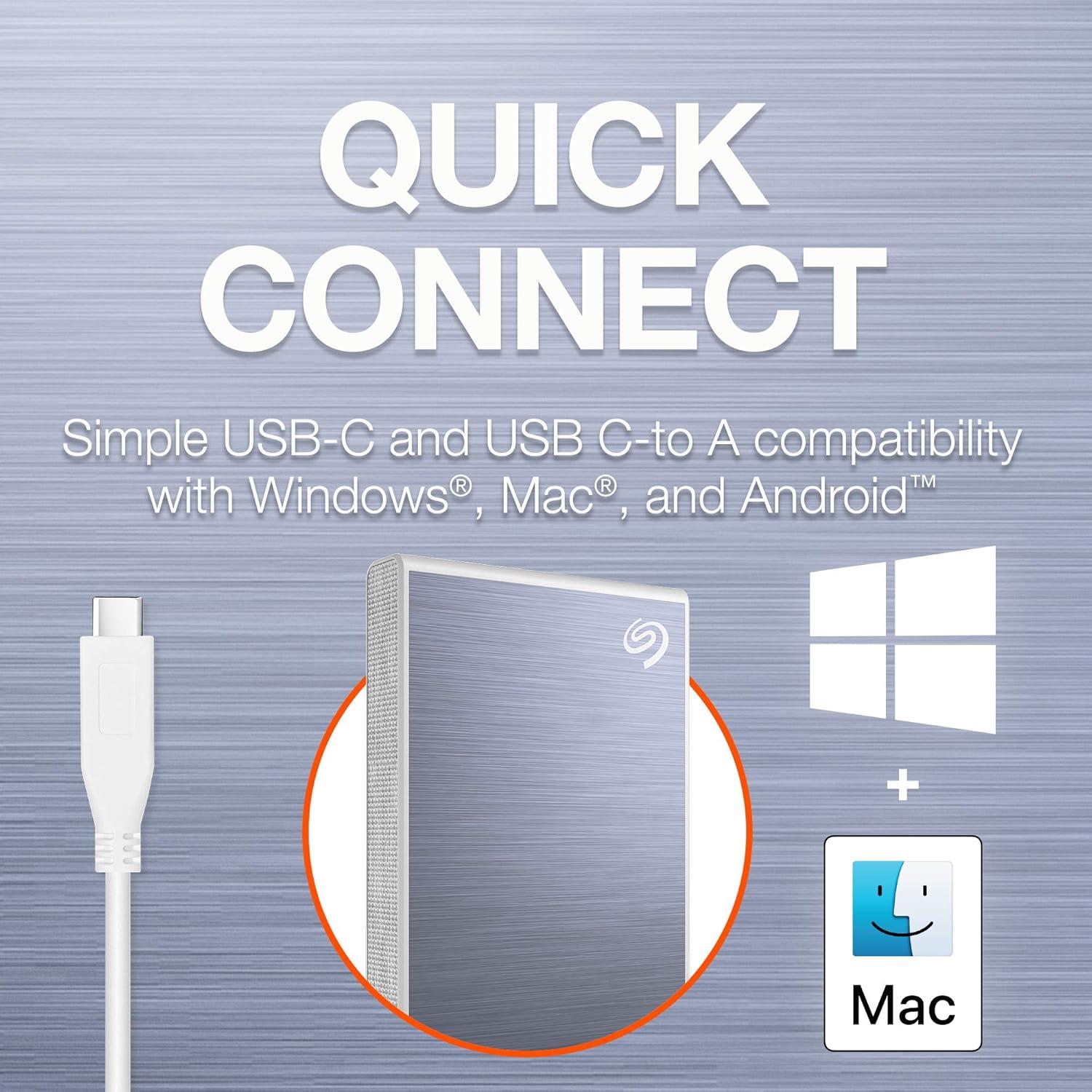 Accelerate your performance and score some downtime with One Touch SSD. With speeds up to 1030MB/s to transfer large files without delay, an Android app to backup photos and videos—freeing up device space, plus up to 2TB capacity and simple plug-n-play USB-C compatibility with Windows and Mac to keep files handy. Travel-sized and styled right, work seamlessly from the drive—wherever you are.